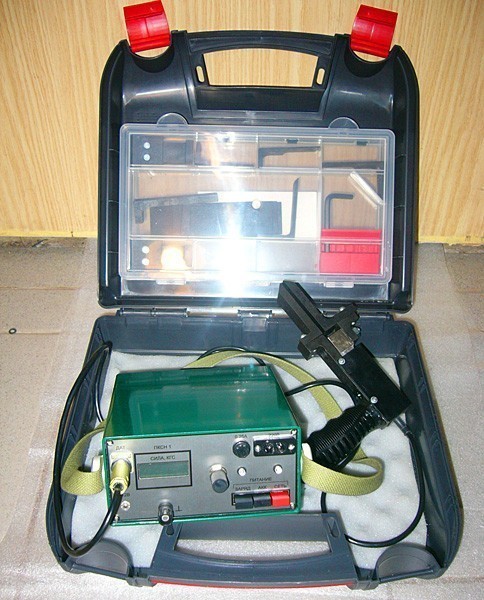 Прибор ПКСН-1 состоит из контрольного щупа, блока измерения и соединительных кабелей. Контрольный щуп выполнен на основе тензорезисторного датчика. Блок измерения служит для обработки сигнала, поступающего с контрольного щупа, и цифровой индикации значения силы нормального контактного нажатия. Контроль и регулировку силы нажатия с помощью прибора может выполнять один человек.
