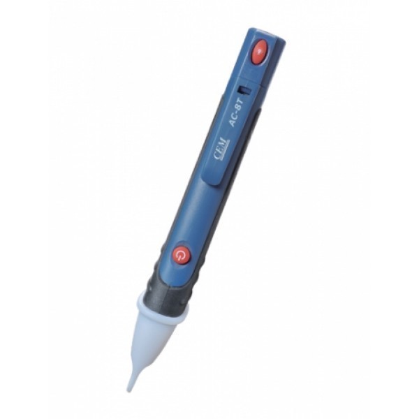 Бесконтактный детектор напряжения AC-8 очень прост в использовании – коснитесь наконечником прибора клеммной колодки, электрической розетки или шнура питания. Если наконечник загорелся ярко-красным светом, значит присутствует переменное напряжение.